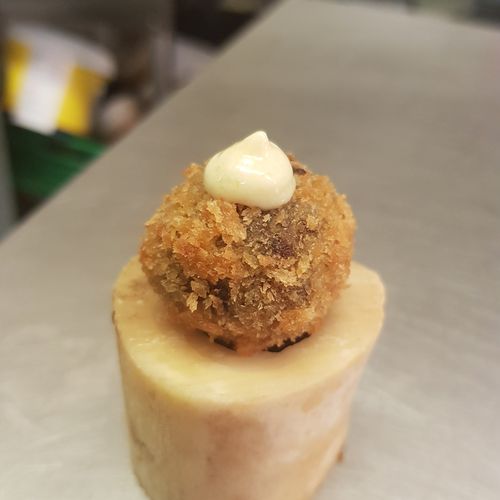 Bbq short rib of beef with roast garlic and welsh truffle emulsion!