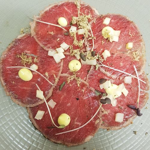 Welsh wagyu carpaccio Sweet and sour celeriac, mustard and welsh truffle